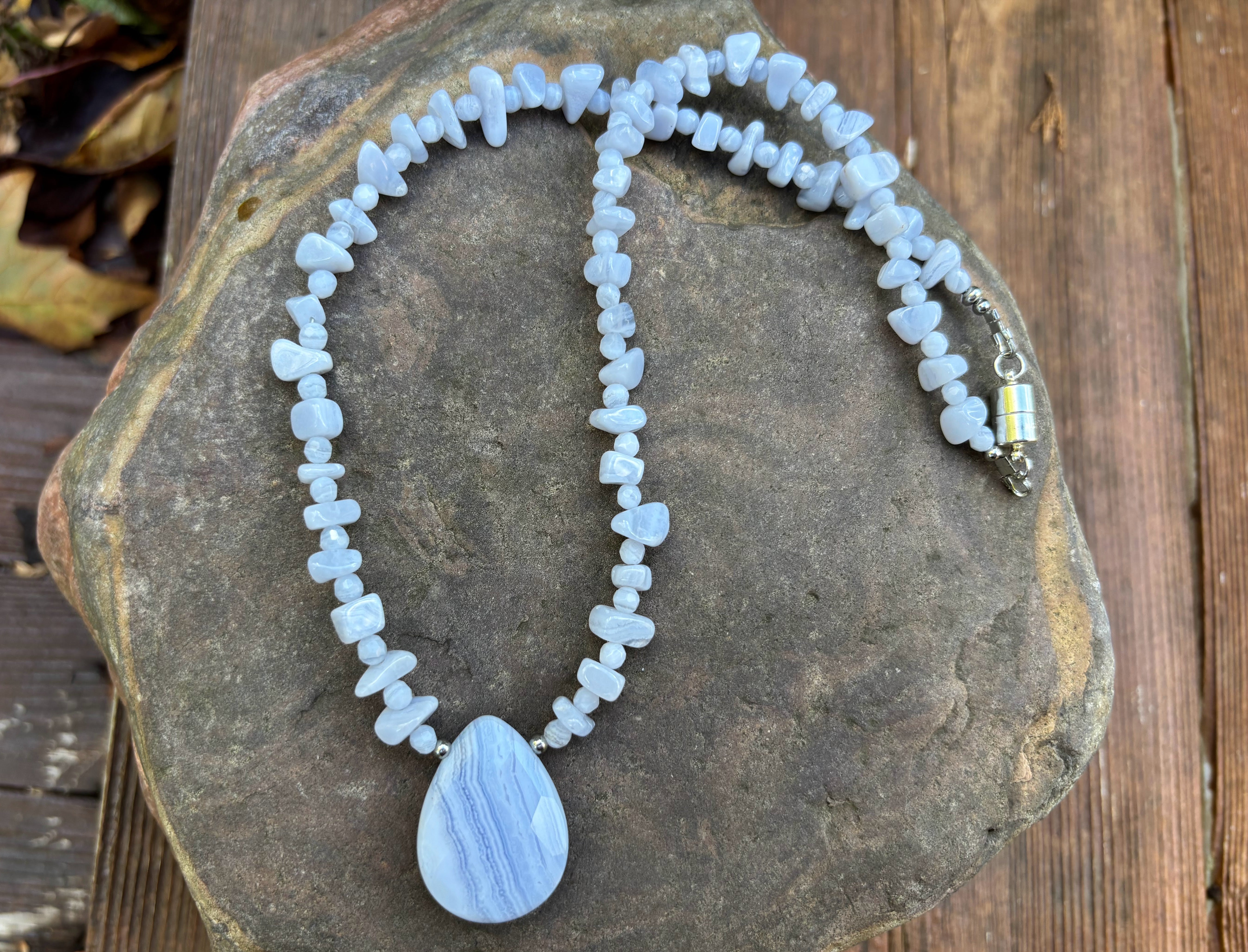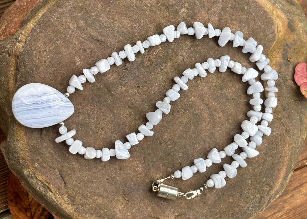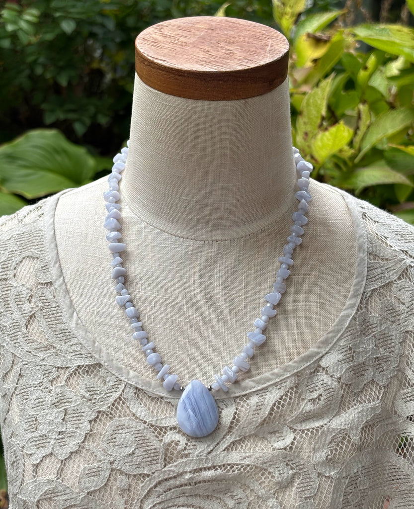 BLUE LACE AGATE NECKLACE | LIGHT BLUE SKY