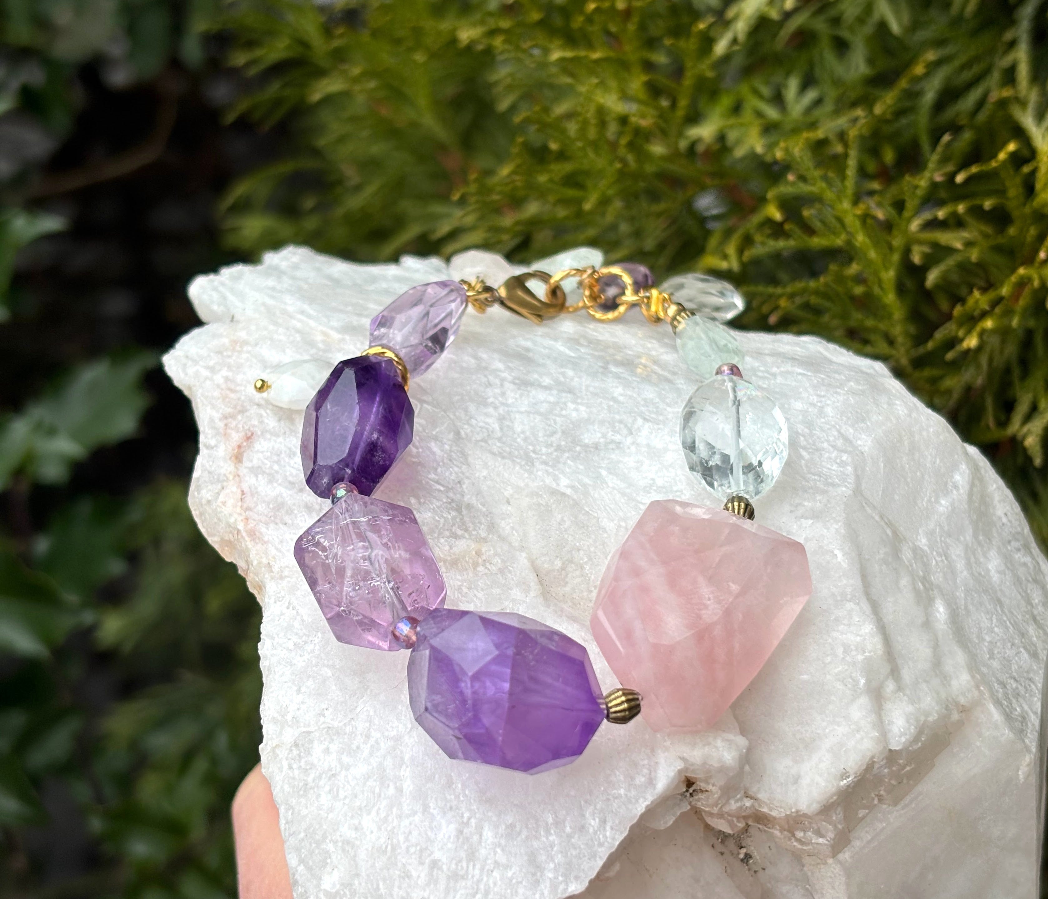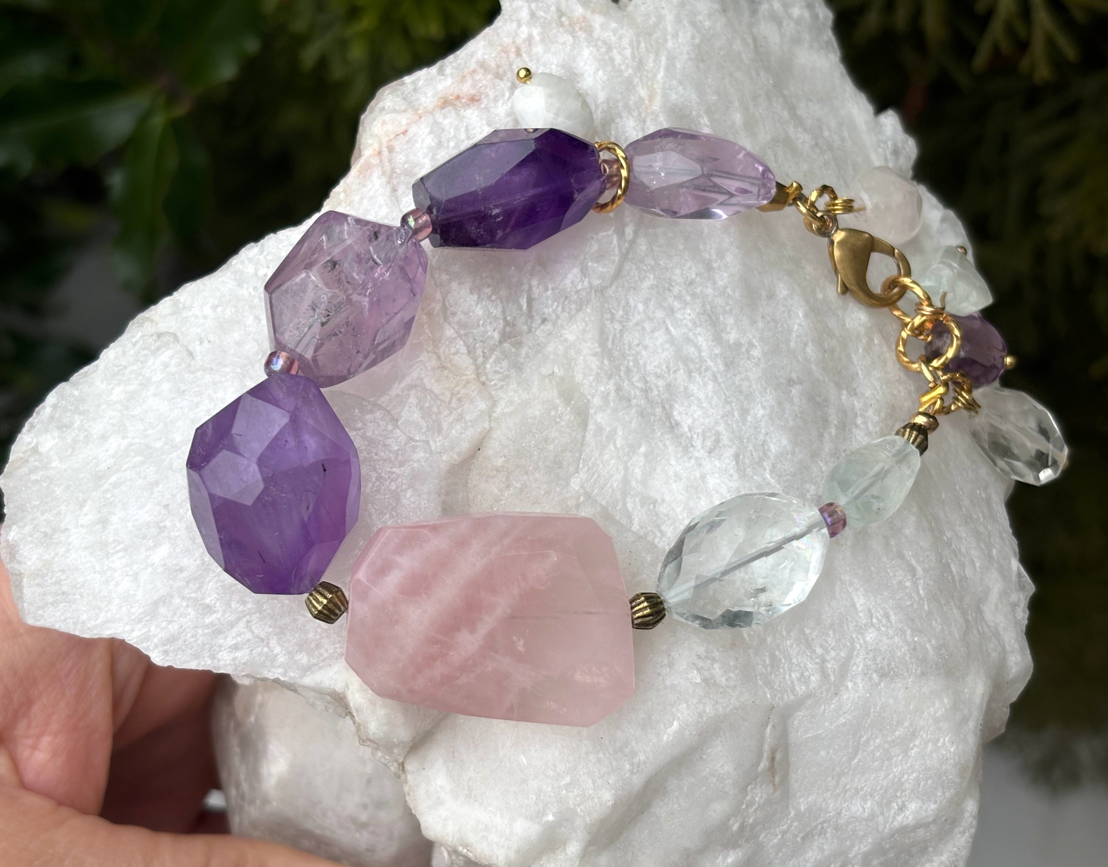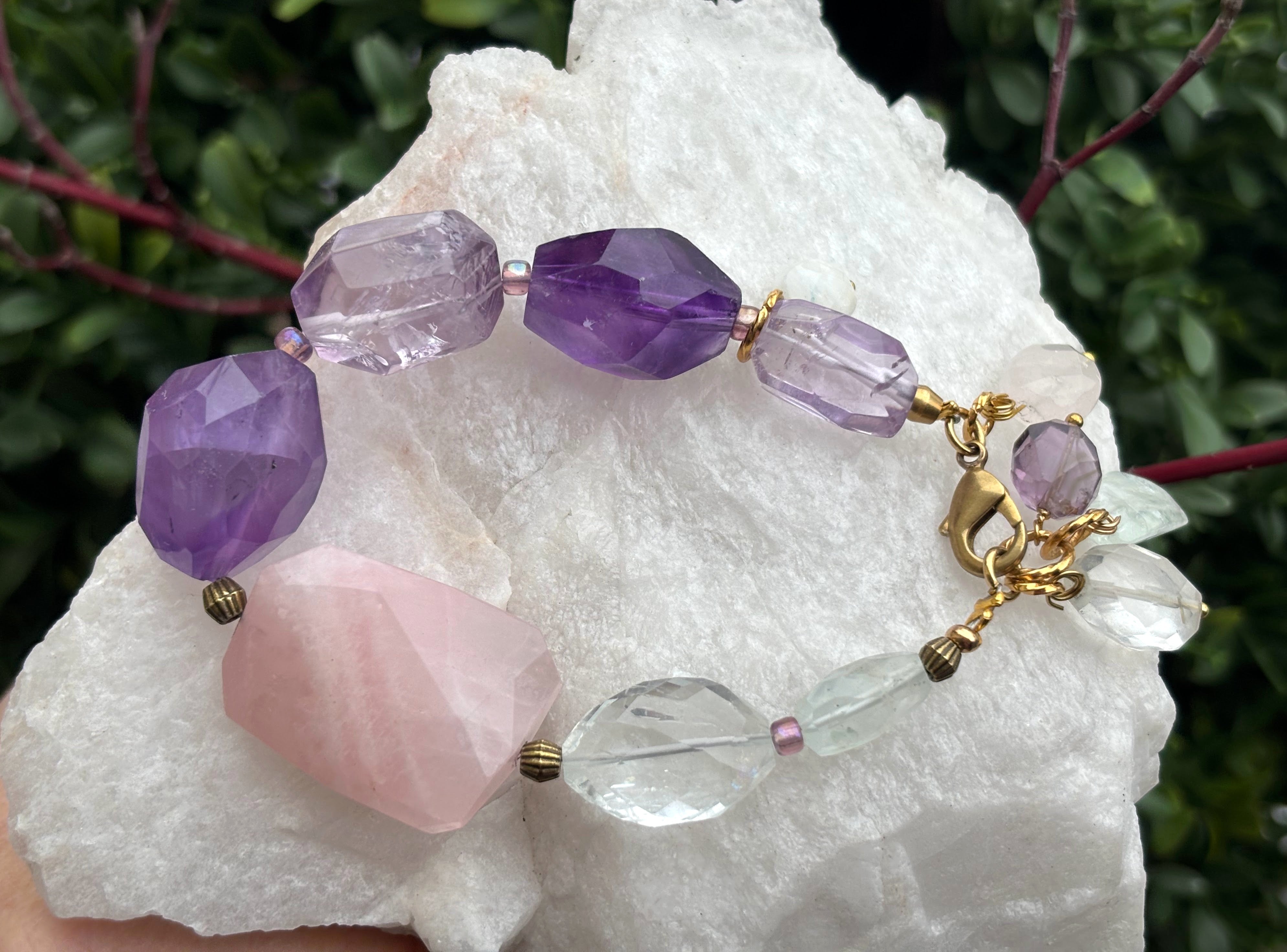 Gemstones: Rose Quartz, Amethyst, Aquamarine