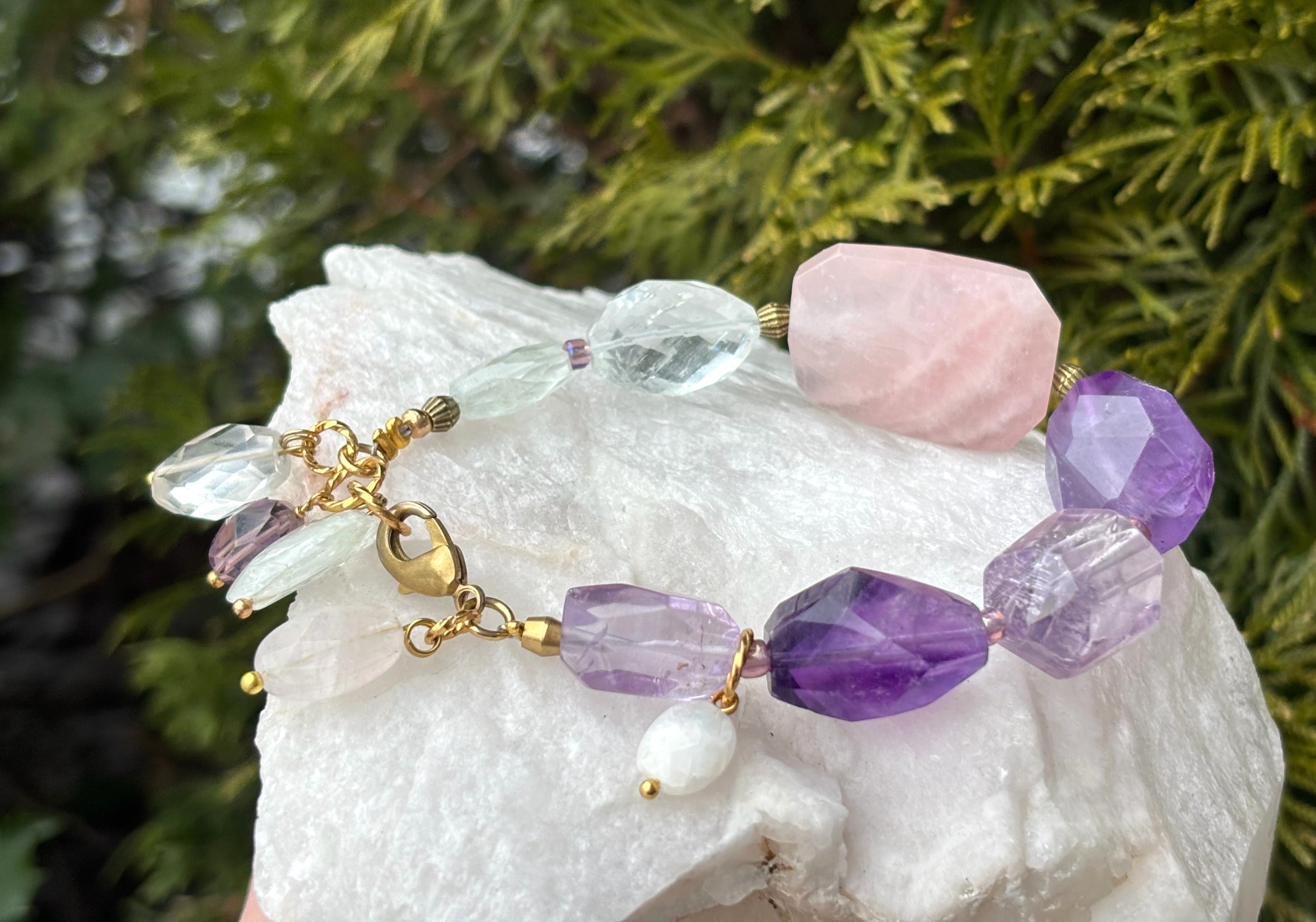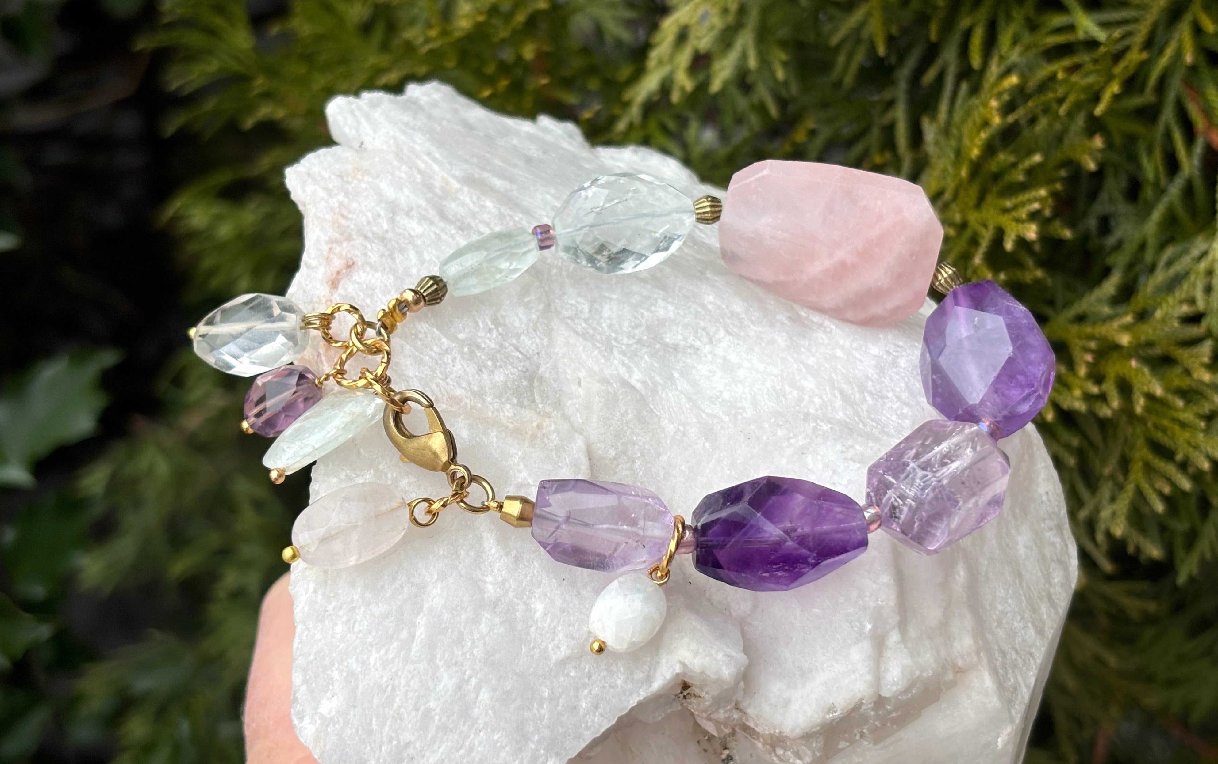 Charms: Aquamarine, Amethyst, Moonstone, Rose Quartz
