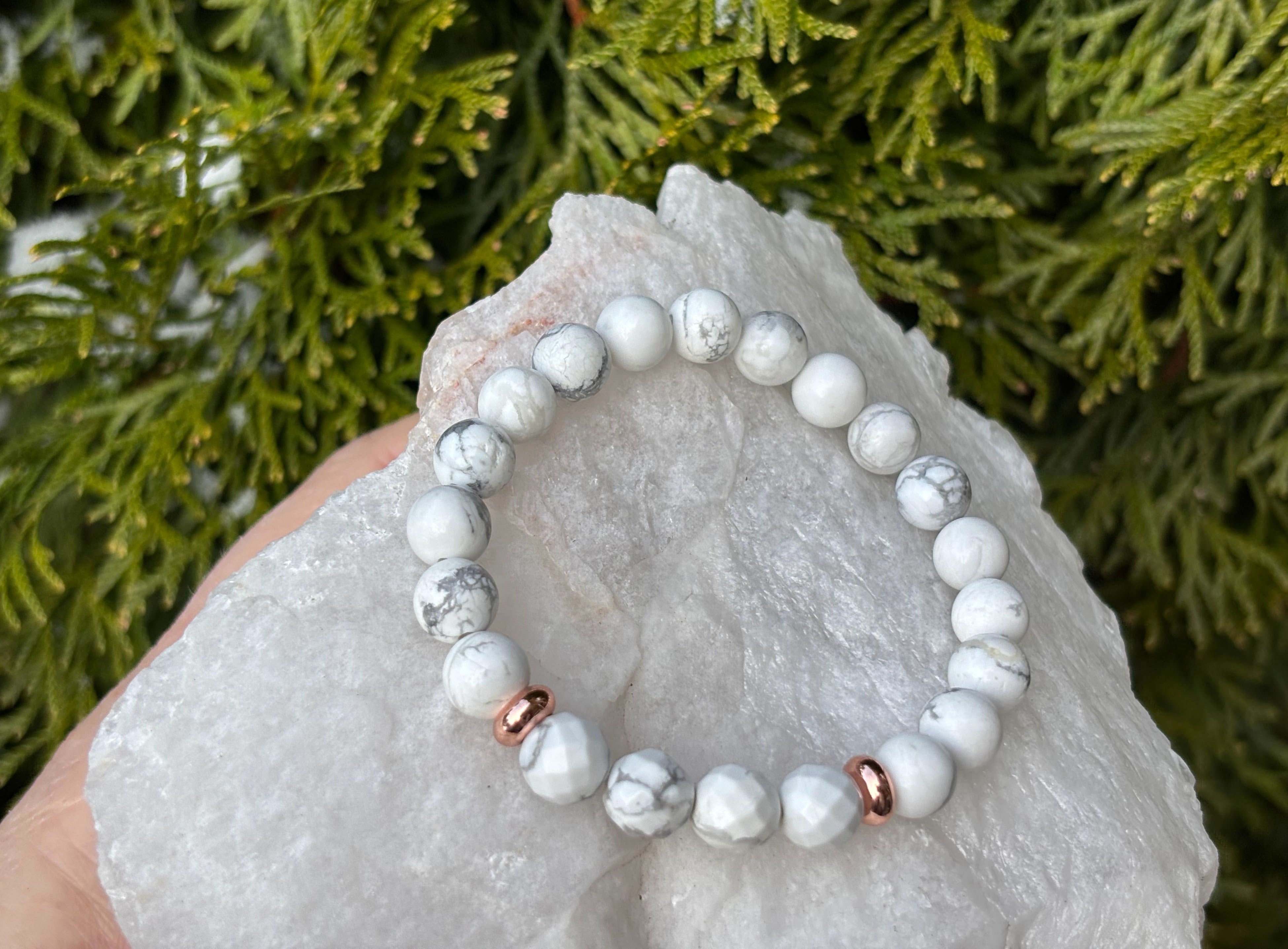 Crisp white + gray Howlite in shiny and faceted beads. One of OG bracelets deserves another introduction. Clean, fresh and classic vibes.