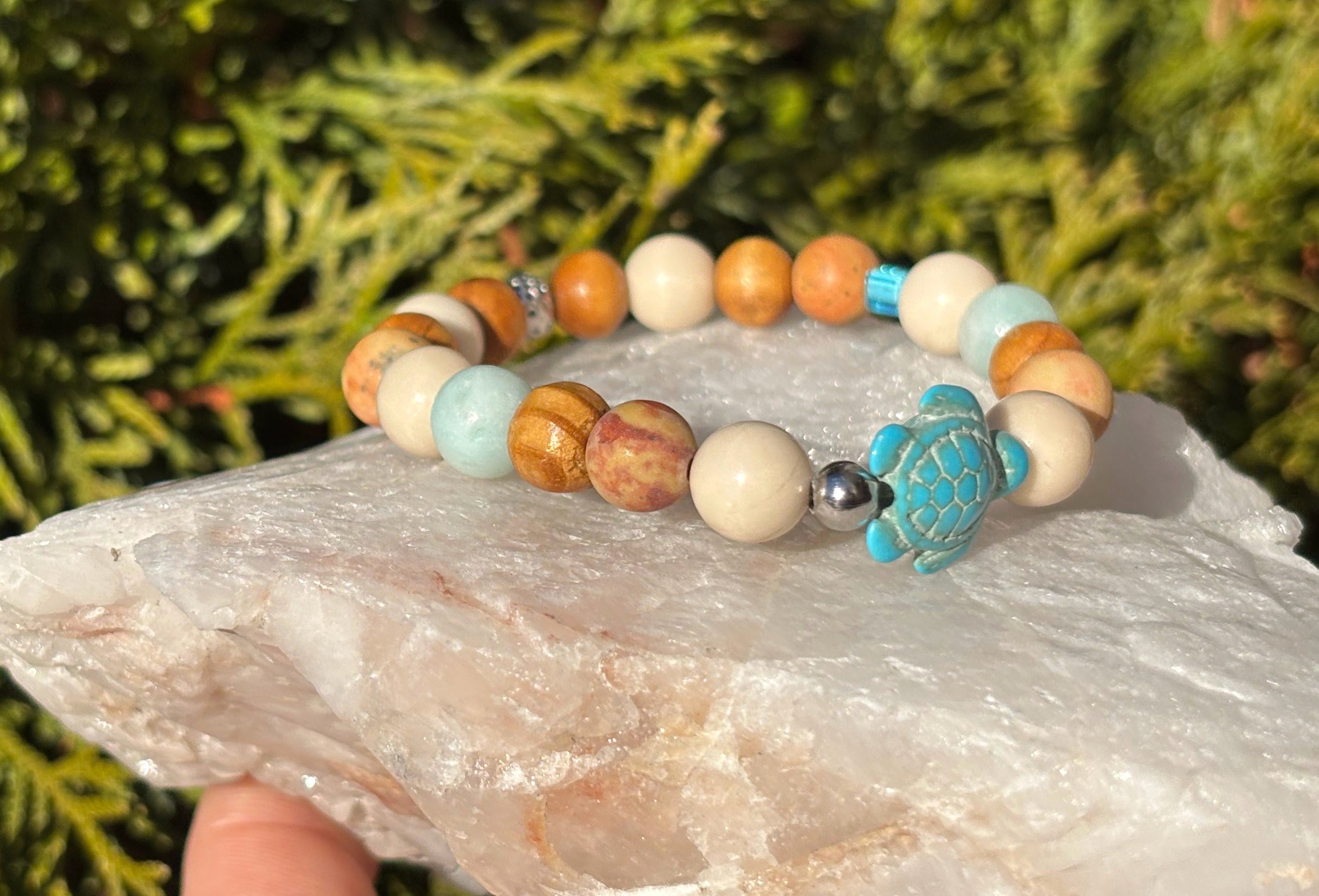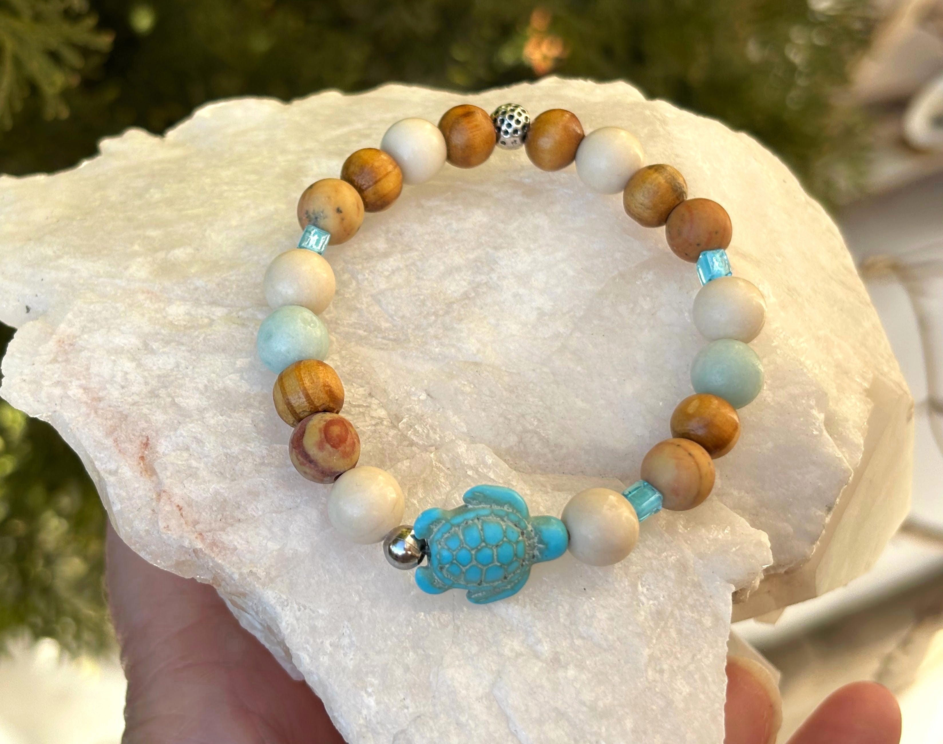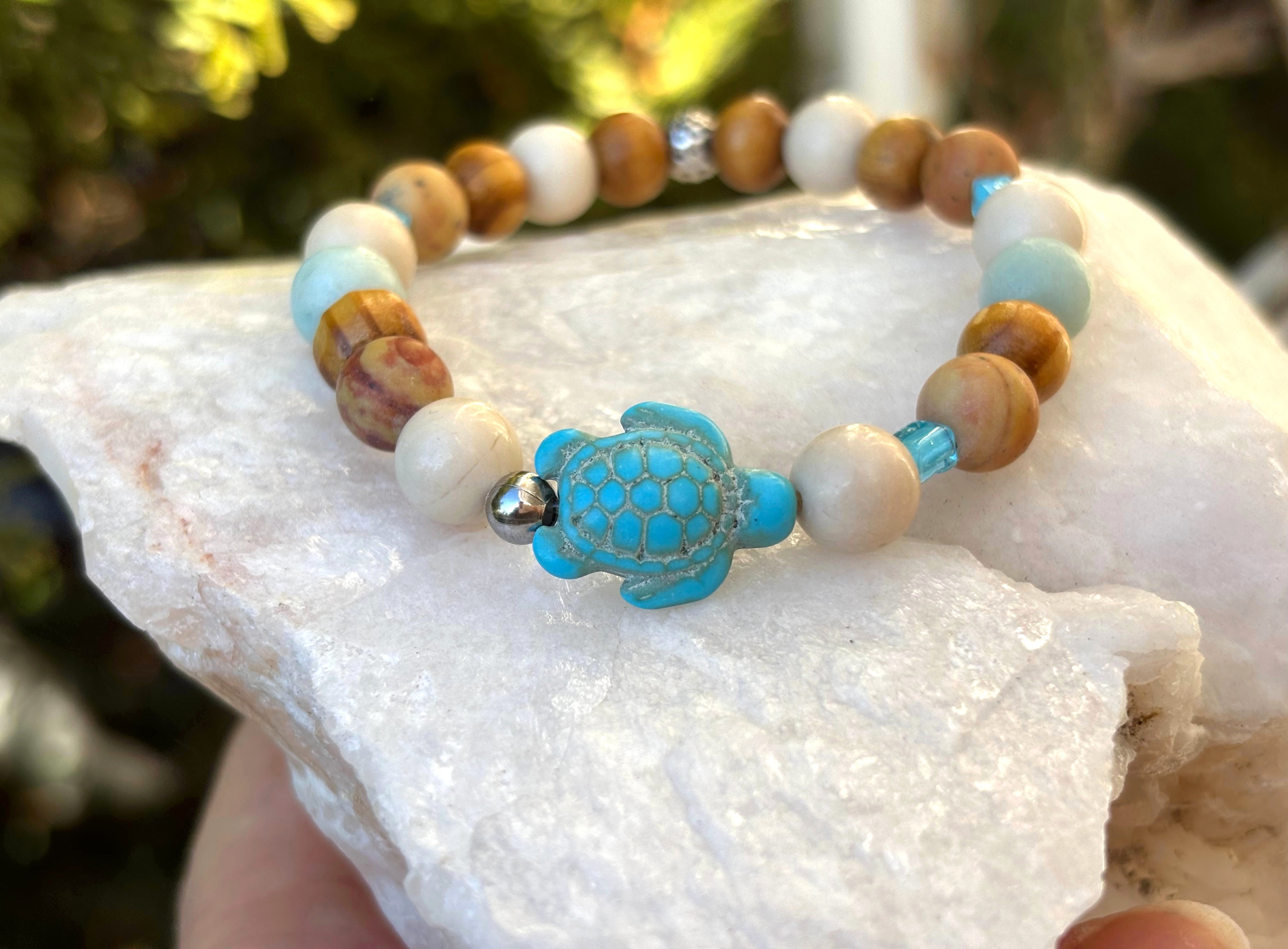 TIDE KEEPER TURTLE BRACELET | AMAZONITE + FOSSIL STONE + WOOD + MIYUKI