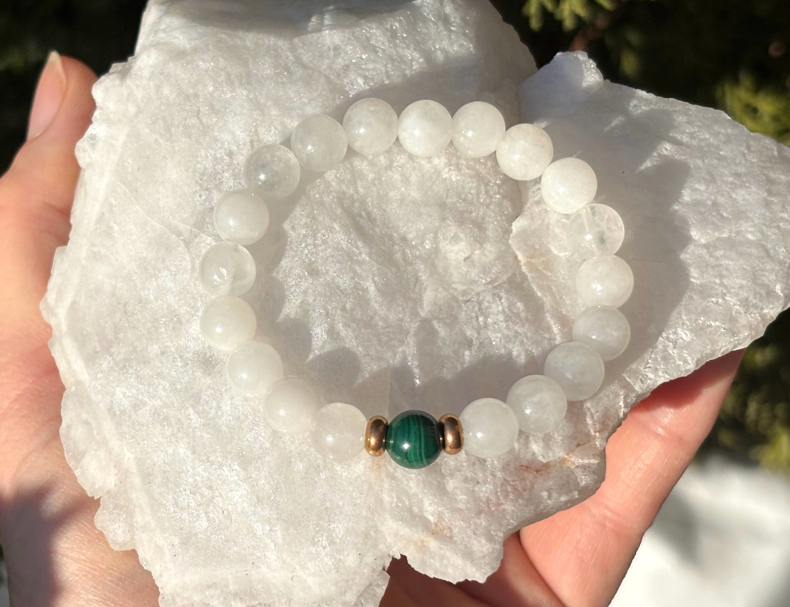 MALACHITE + JADE BRACELET | WHITE LIGHT PROTECTION BRACELET