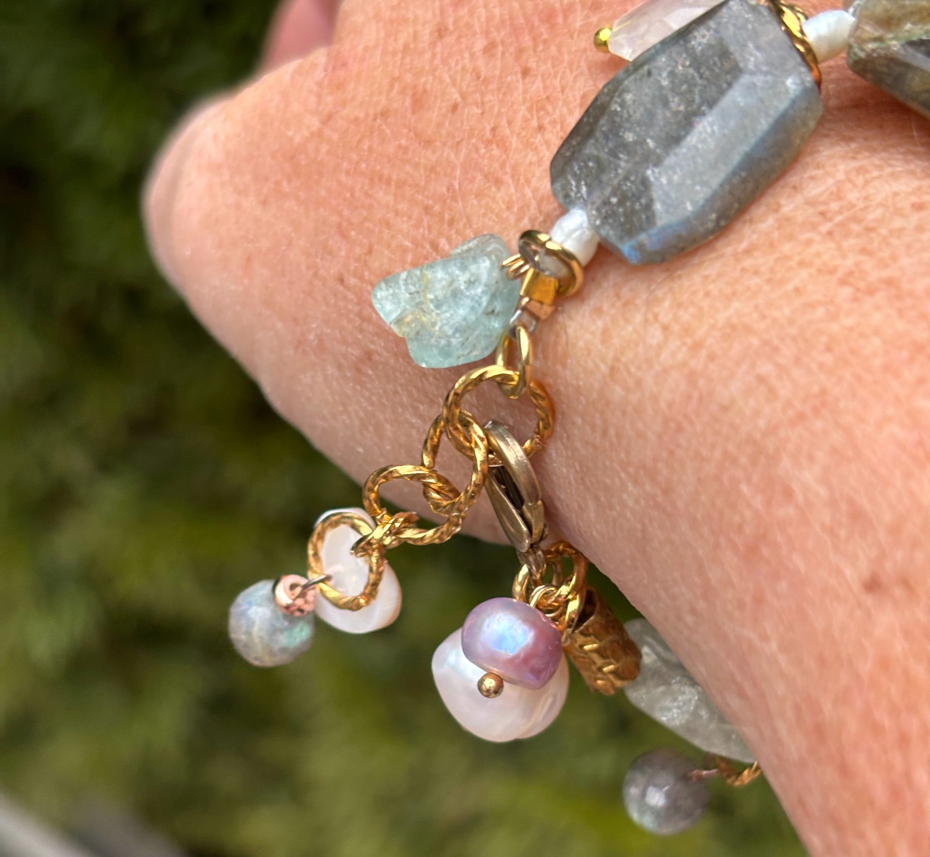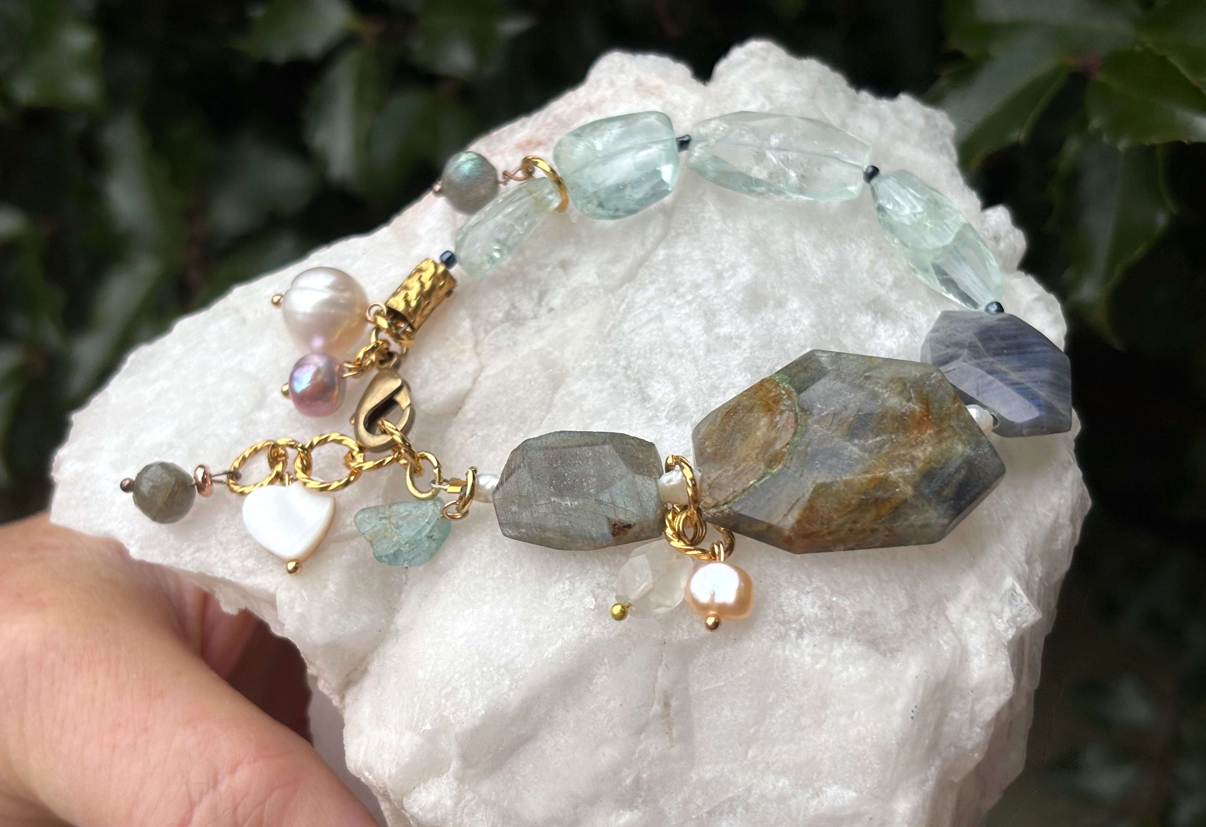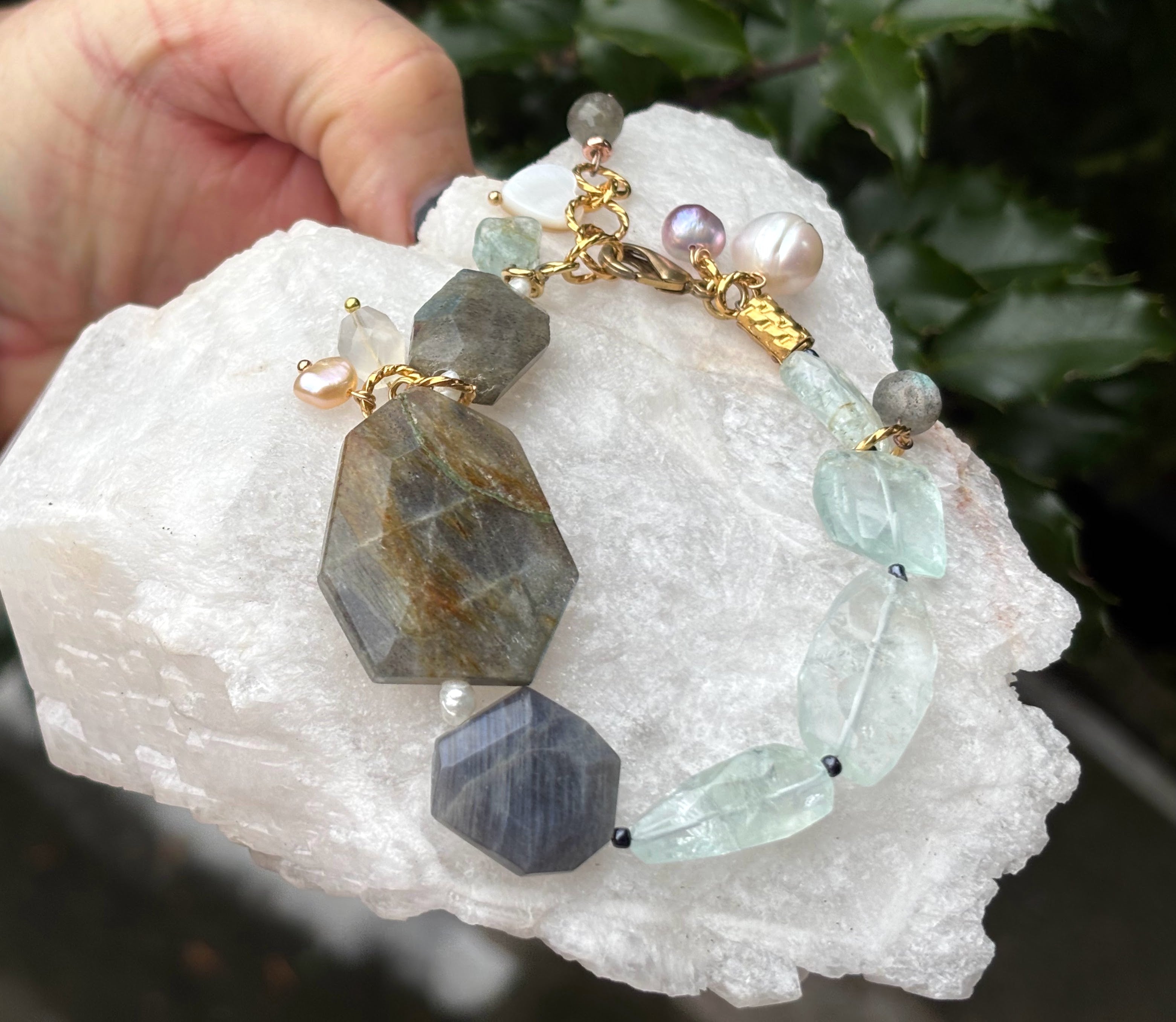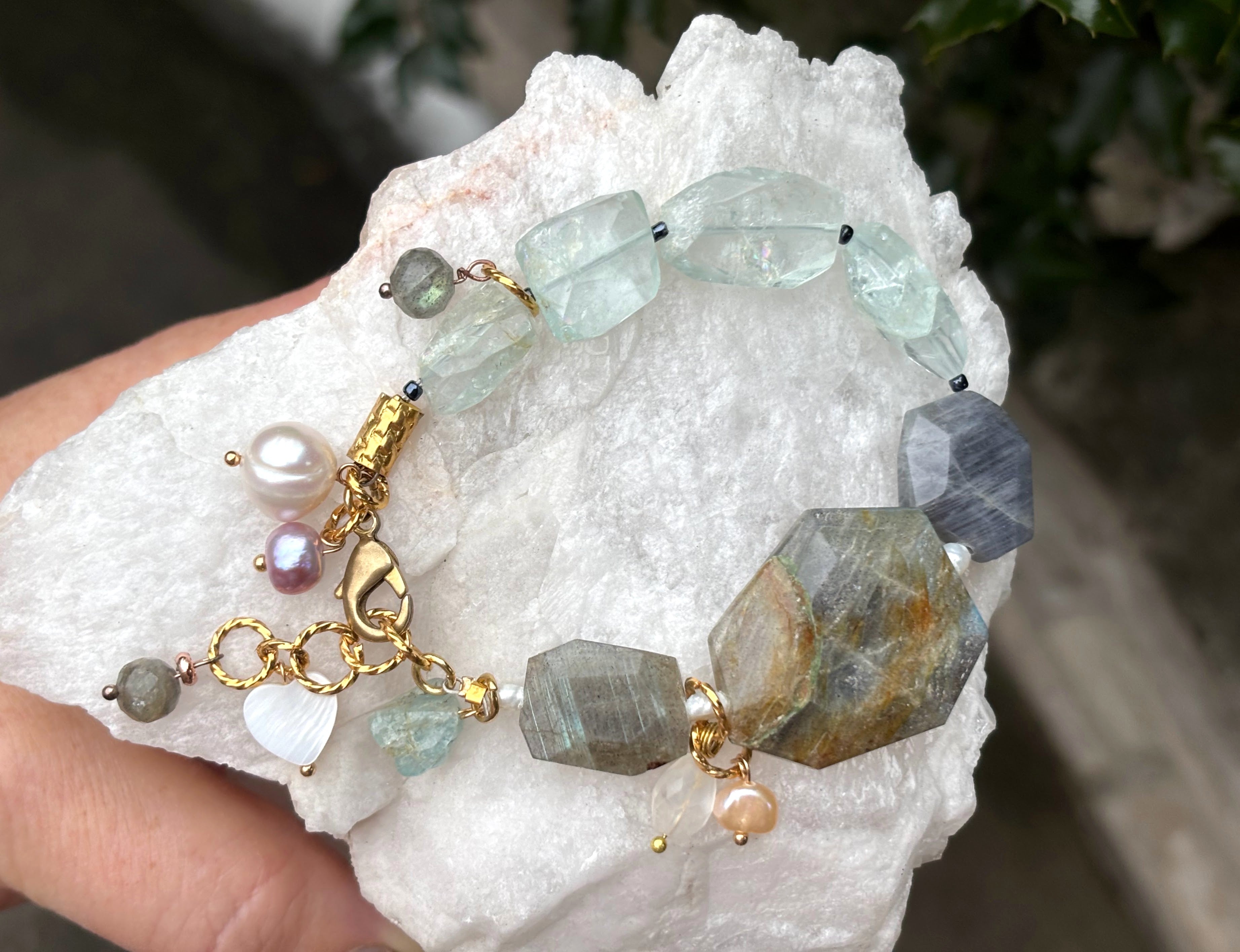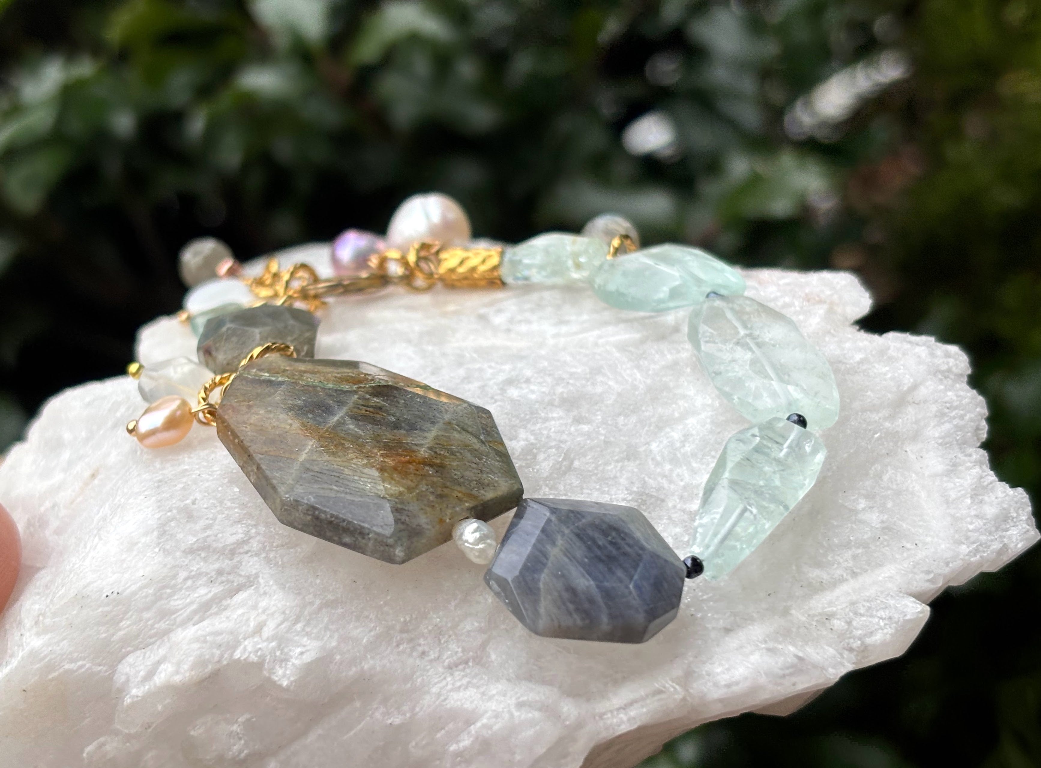 OCEAN TIDE BRACELET | LABRADORITE + BERYL + PEARLS