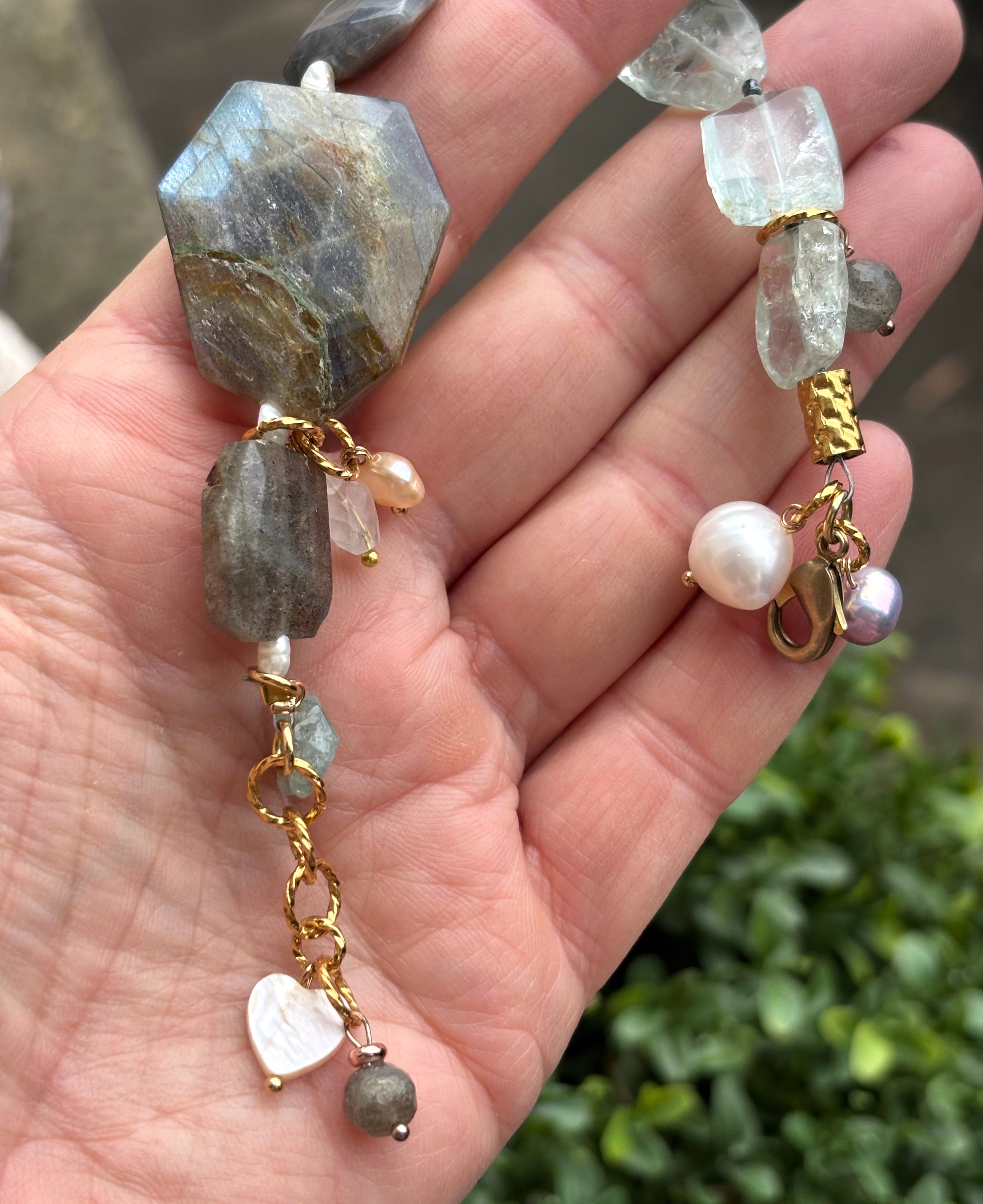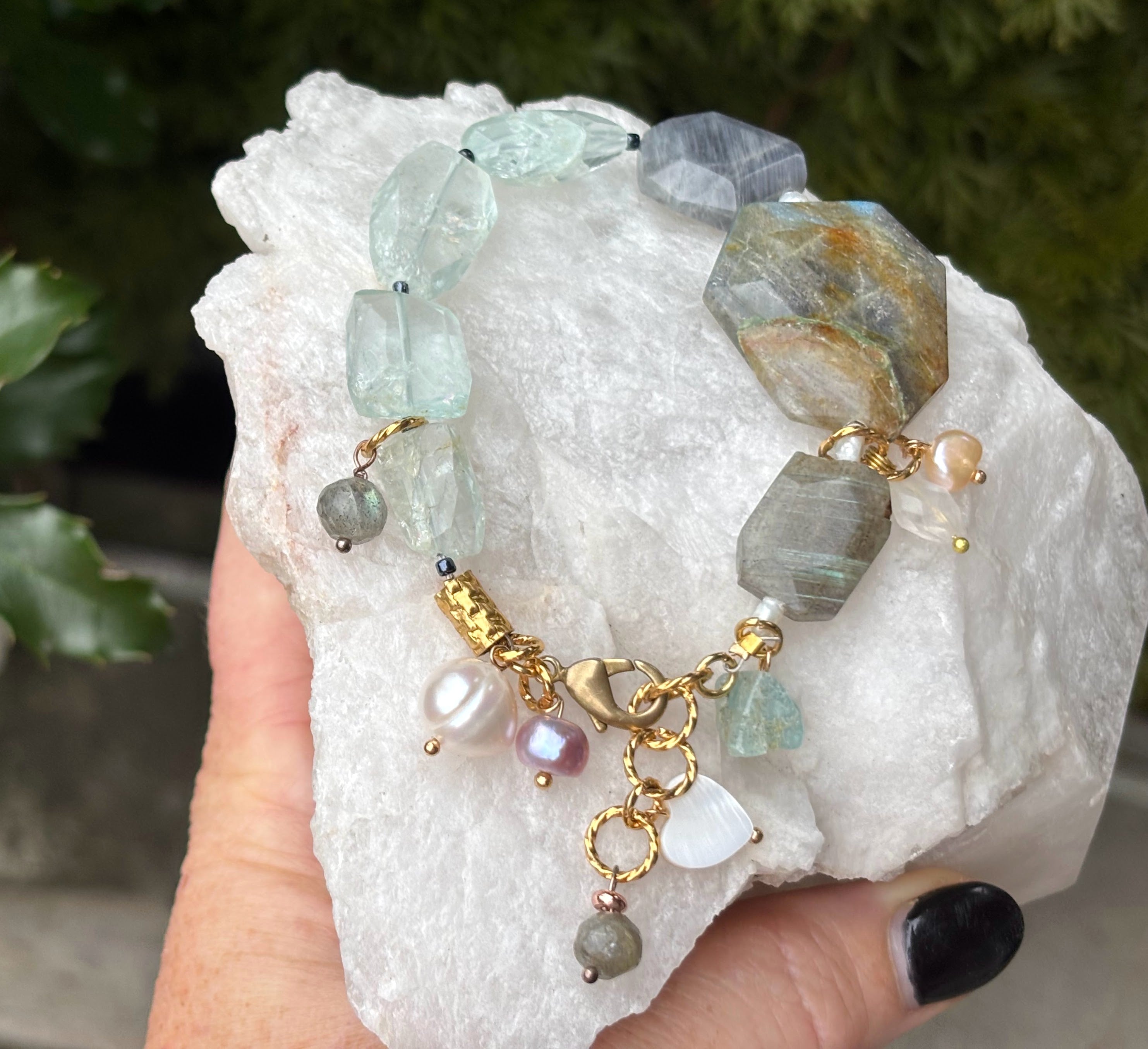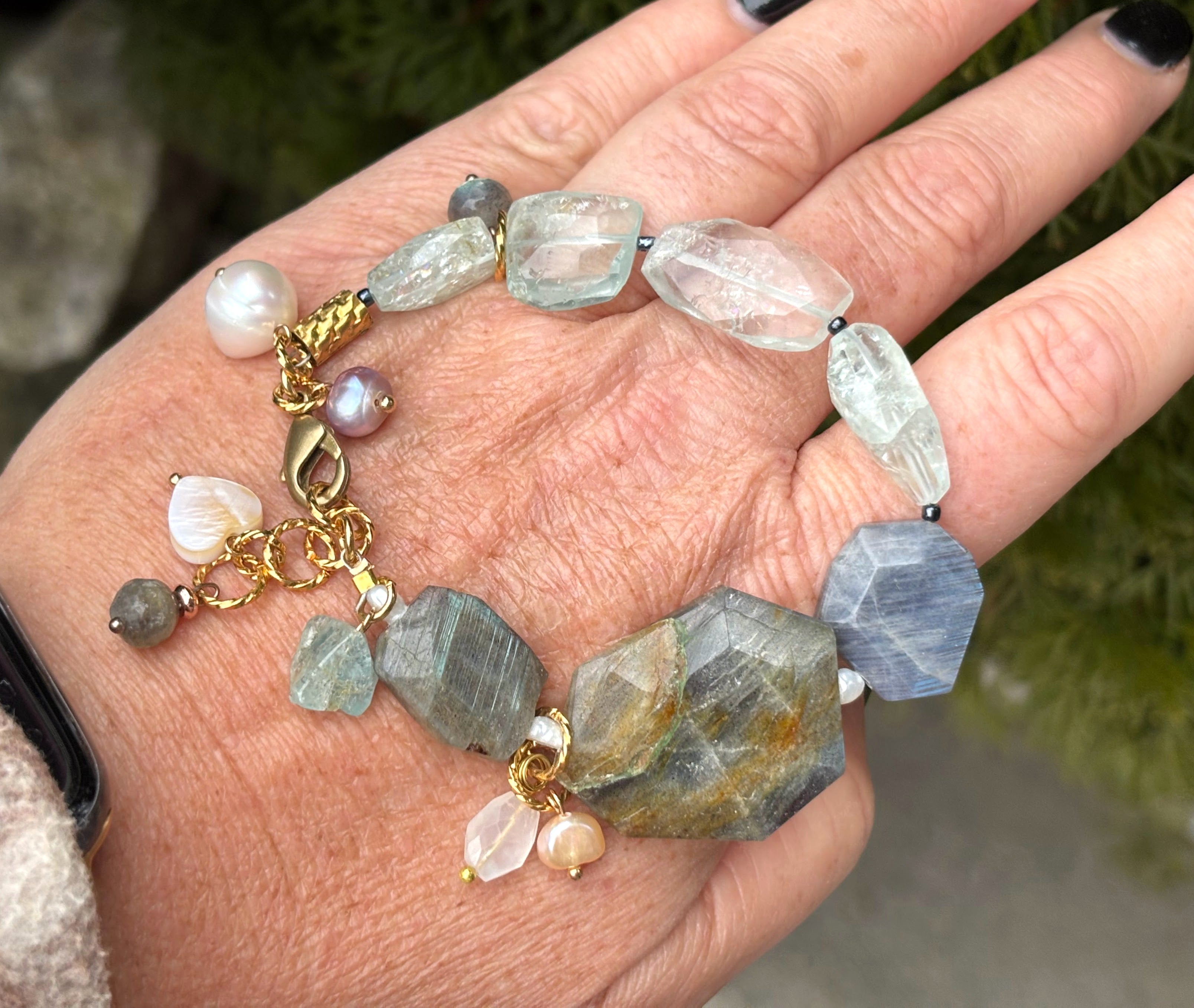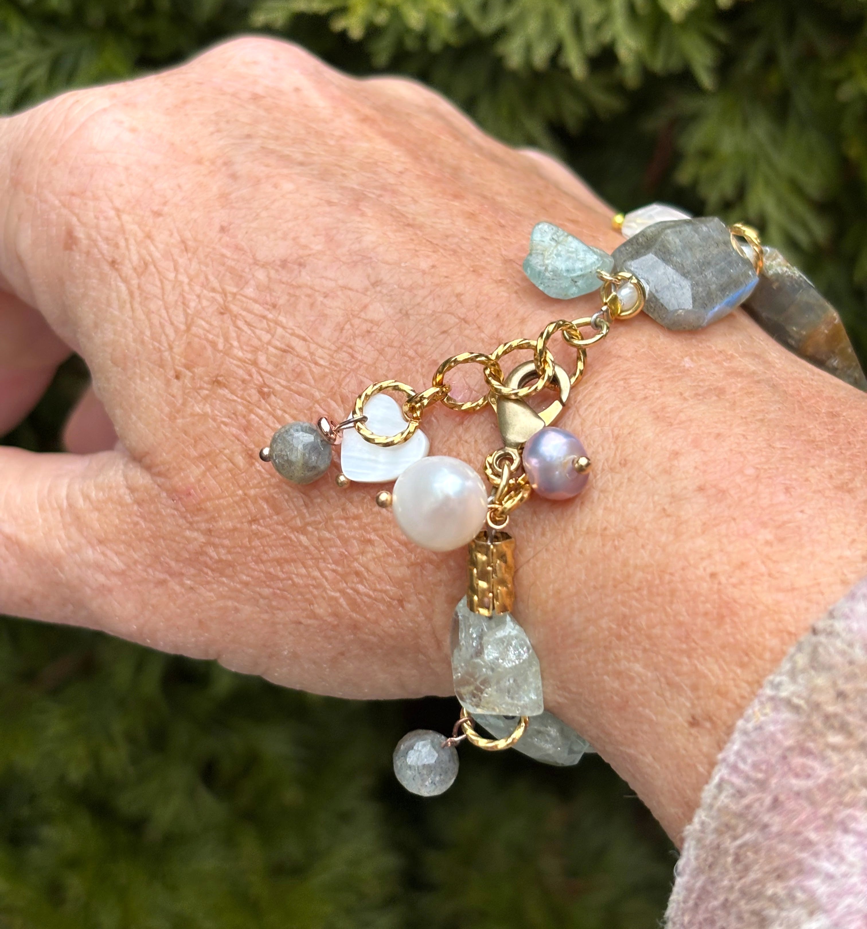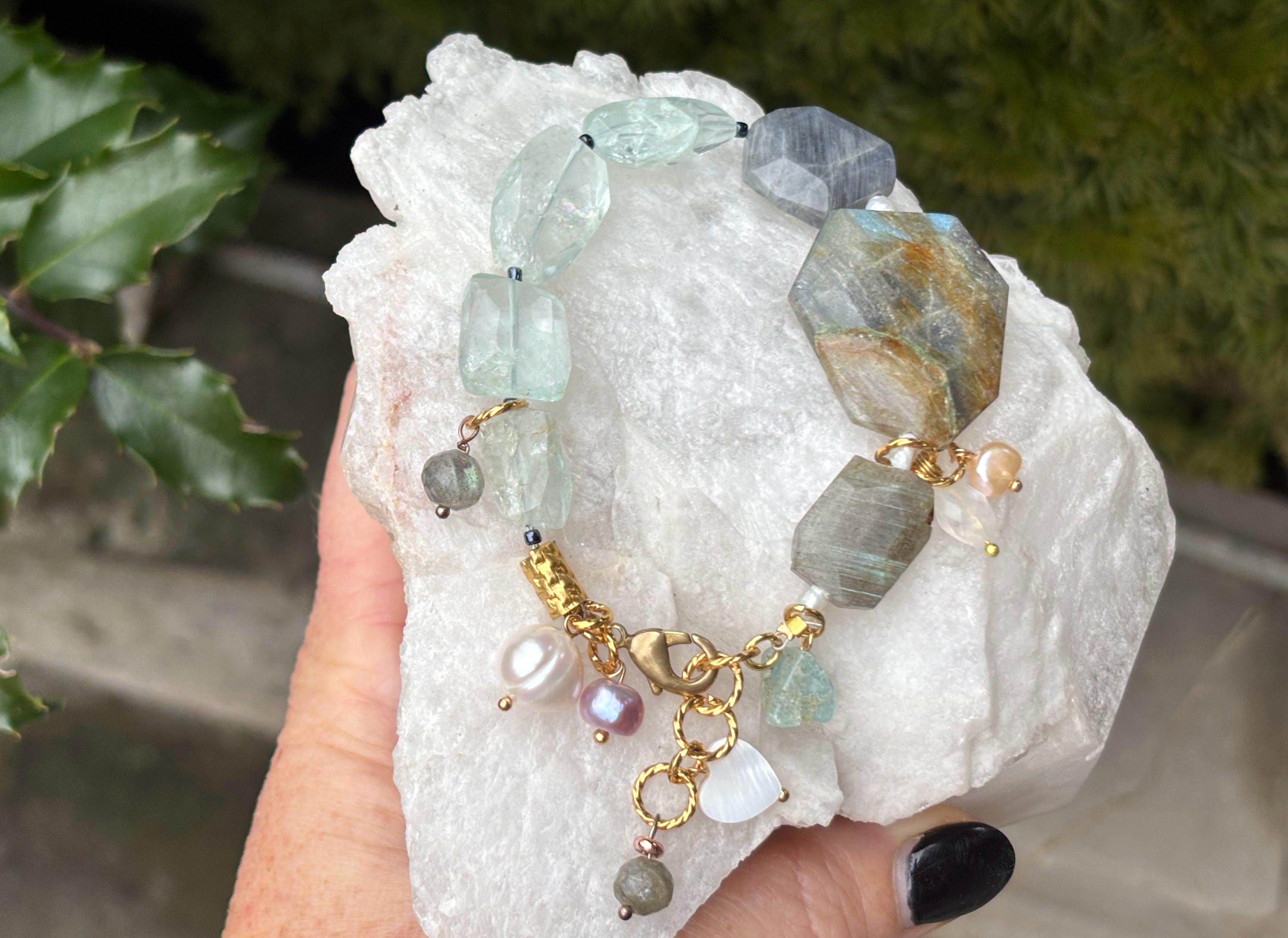 OCEAN TIDE BRACELET | LABRADORITE + BERYL + PEARLS