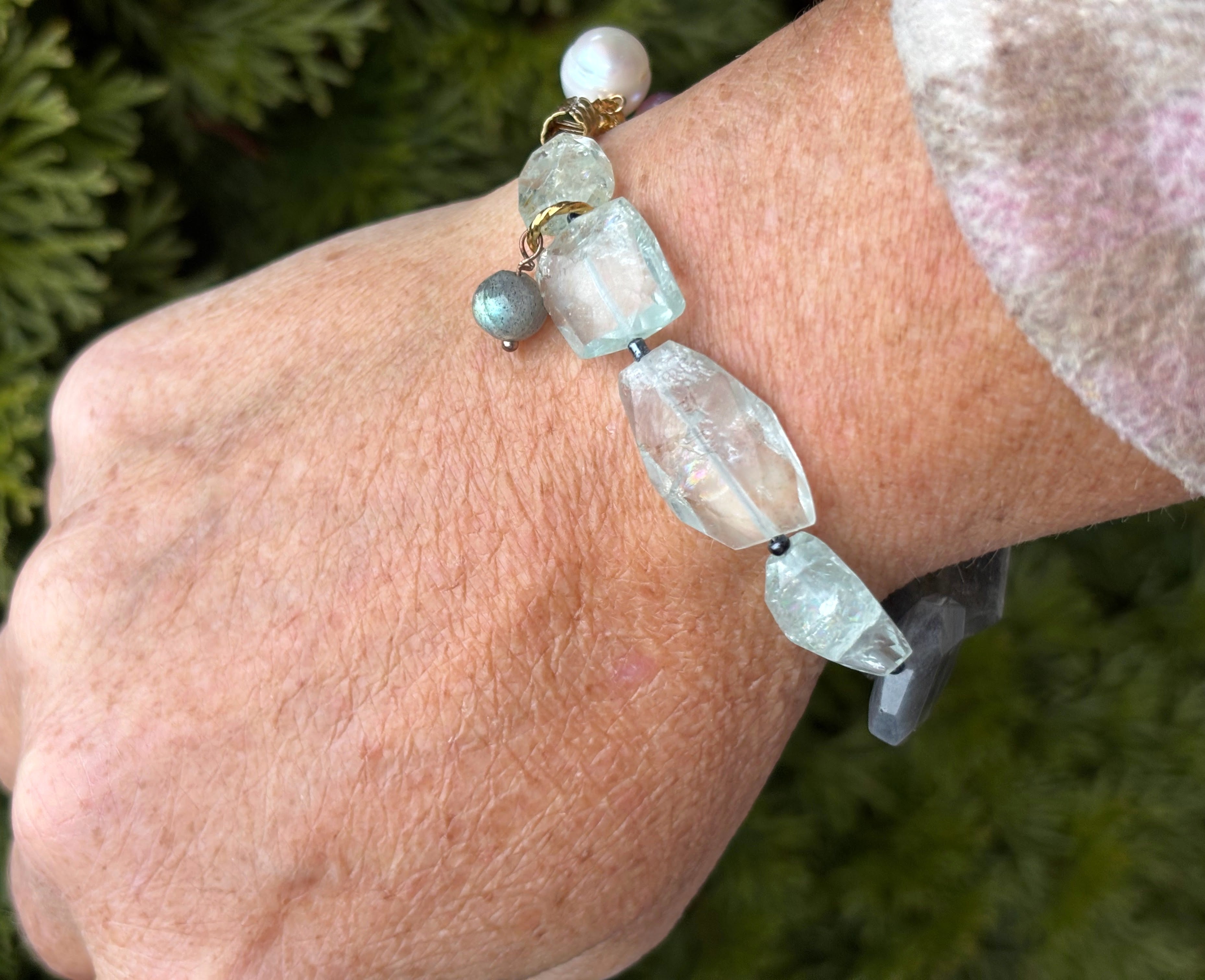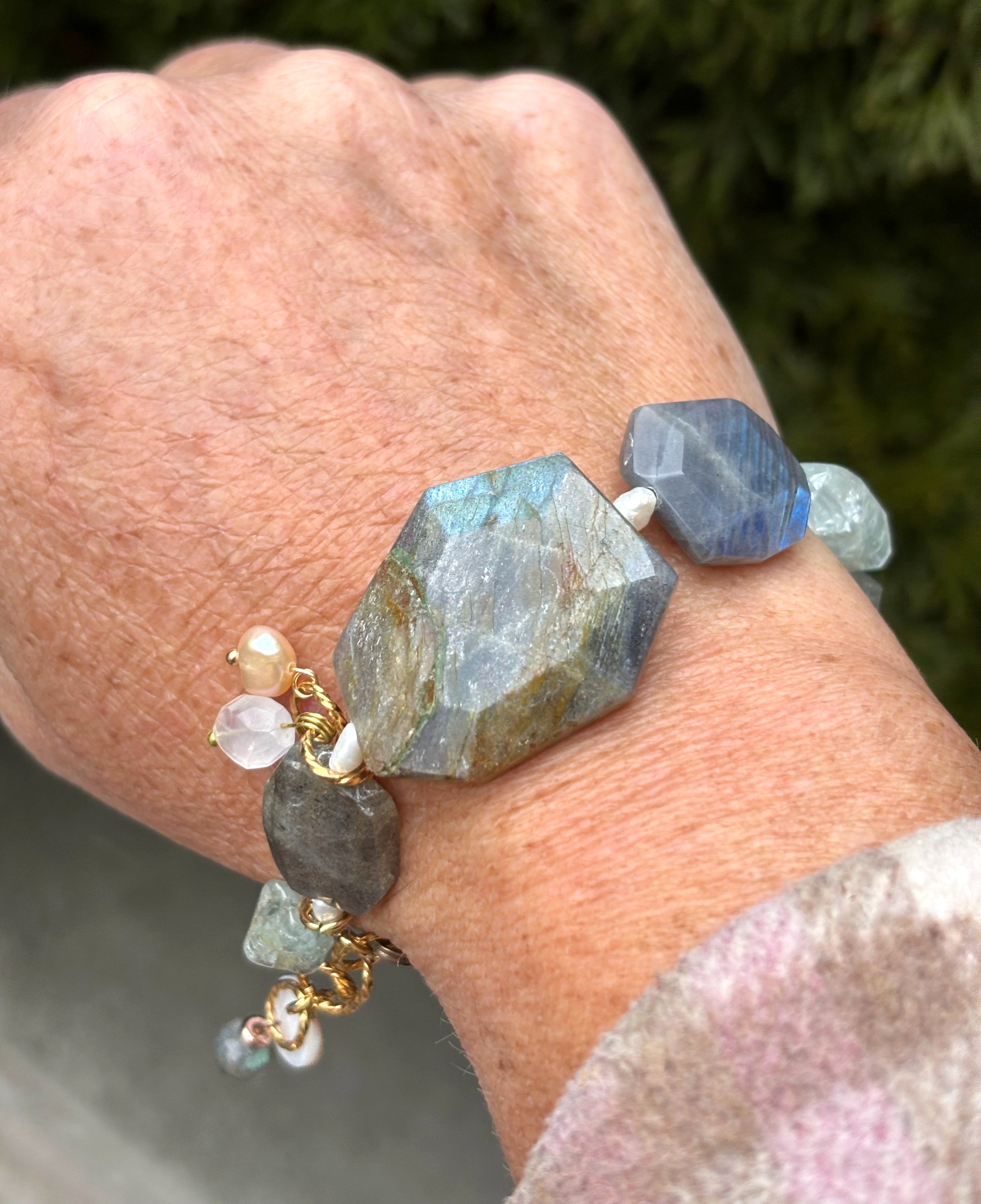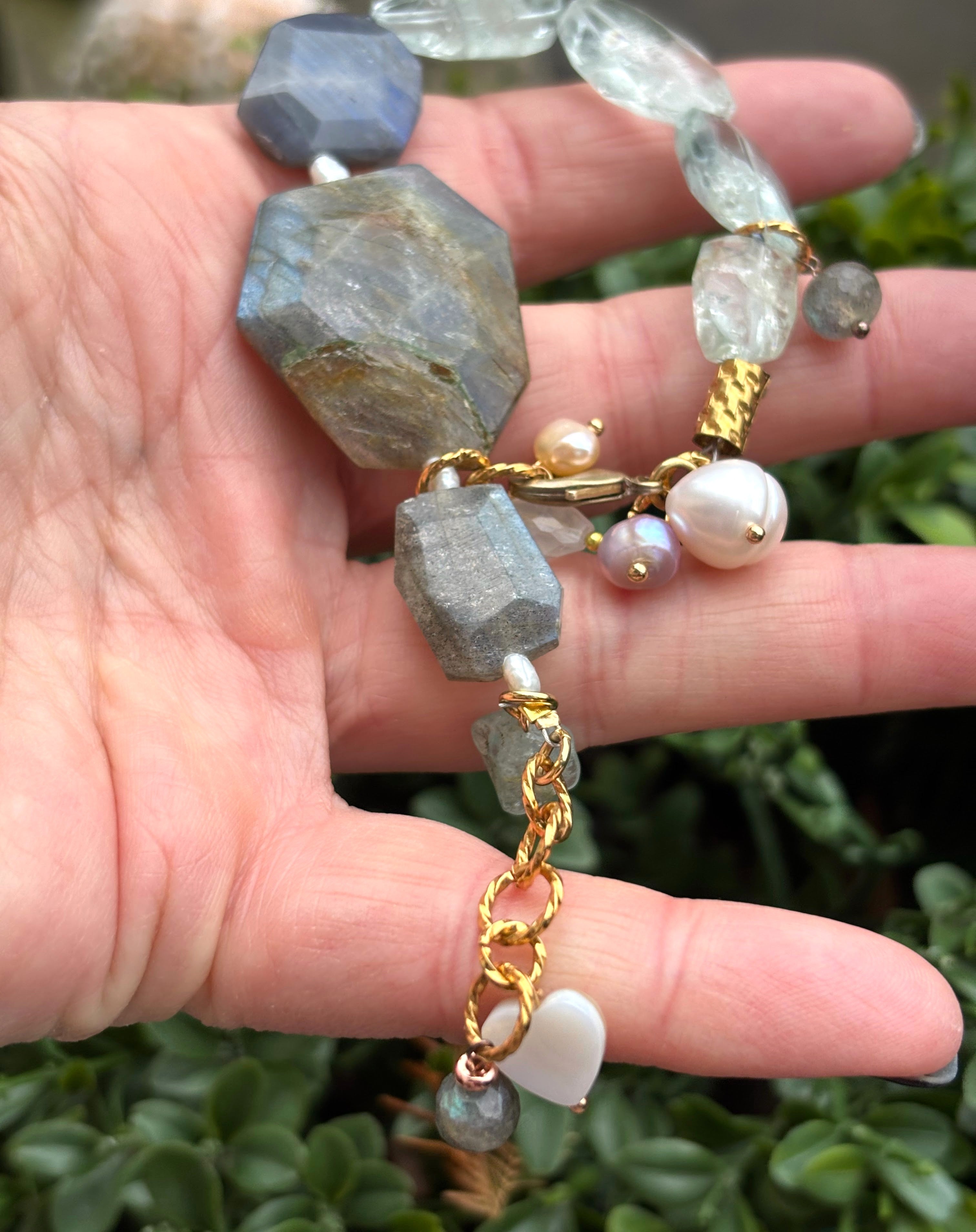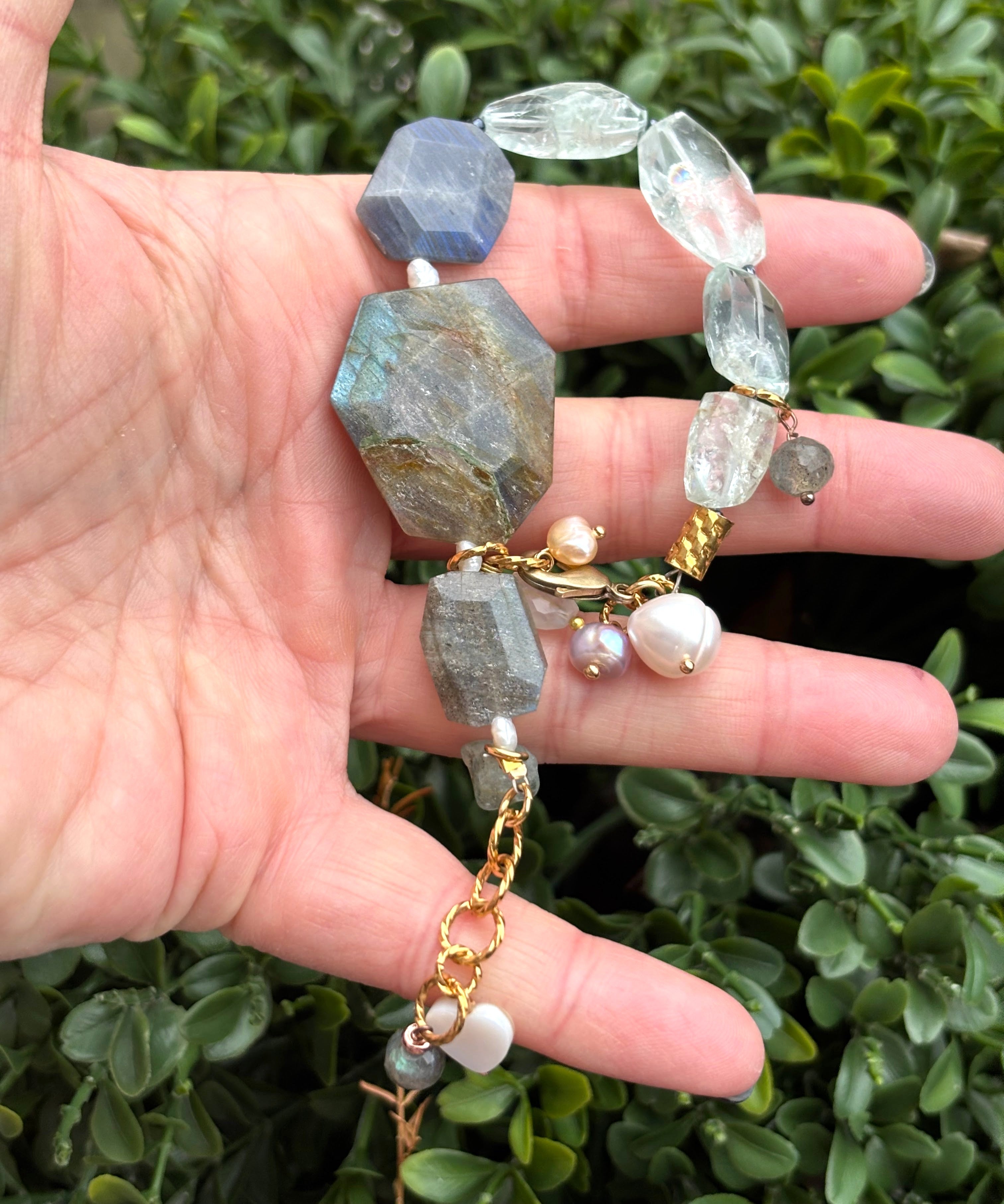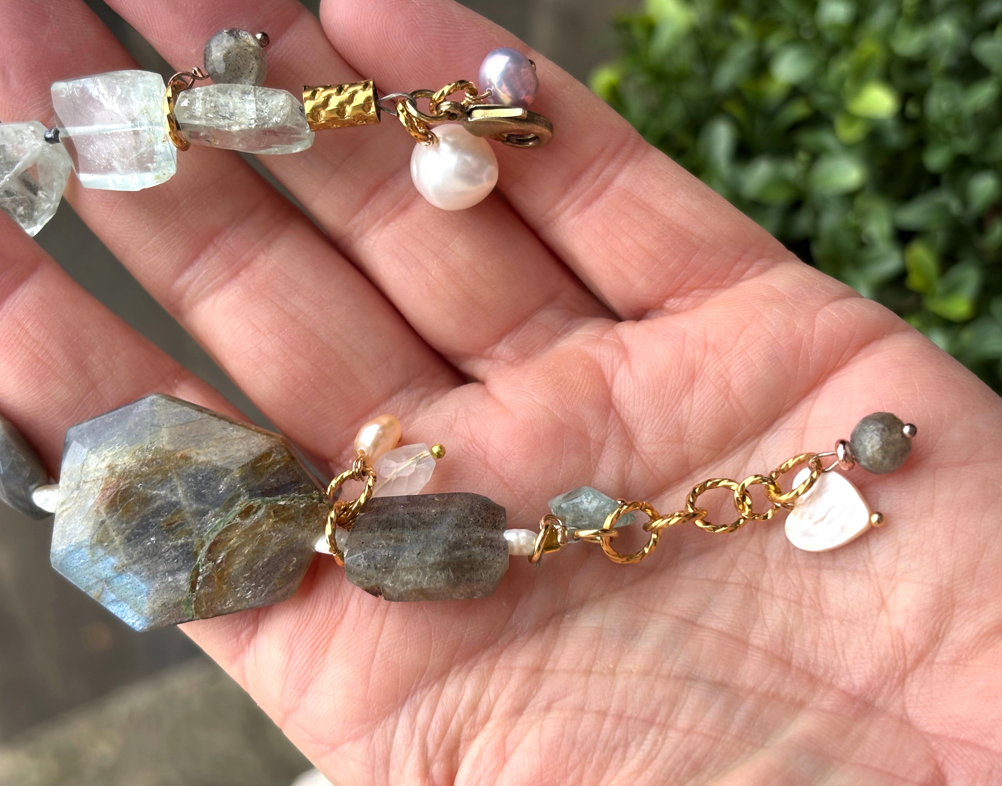 OCEAN TIDE BRACELET | LABRADORITE + BERYL + PEARLS