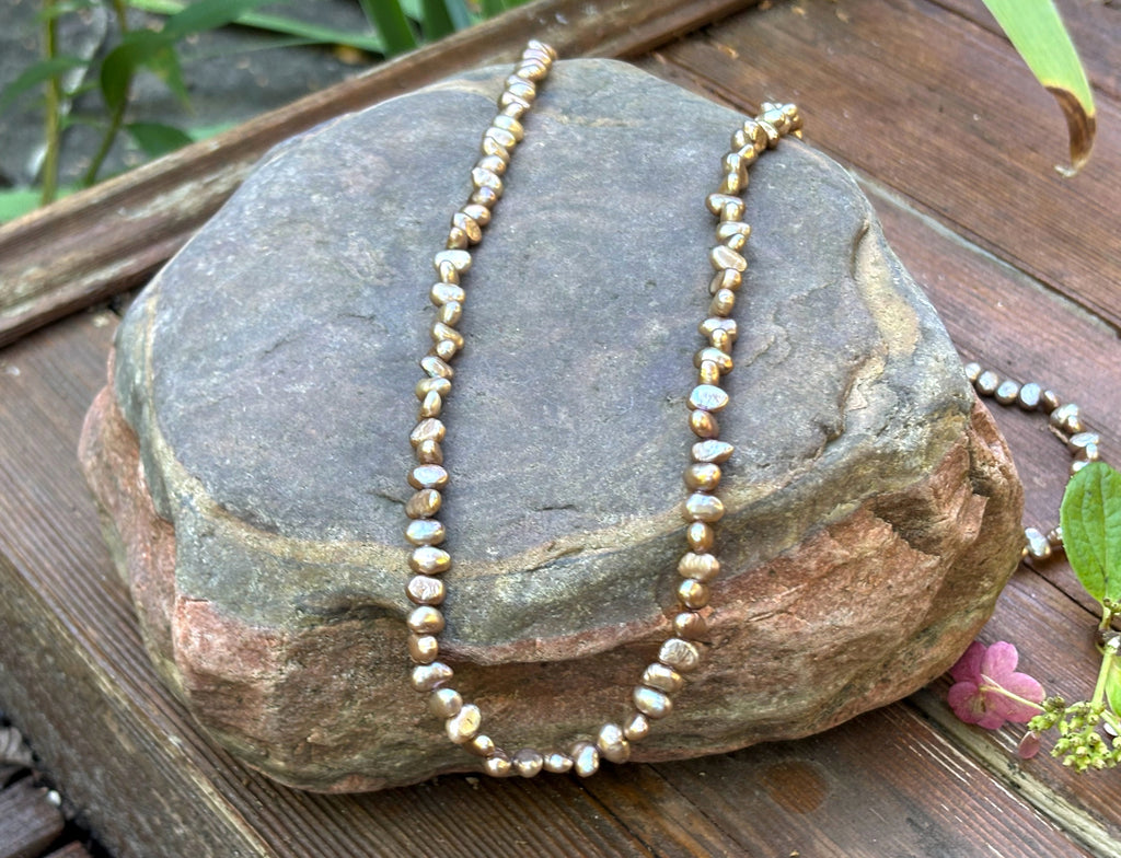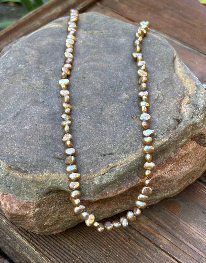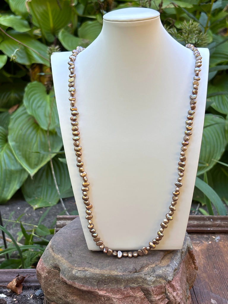 Single strand pearl necklace. Freshwater pearl necklace is a gorgeous golden caramel colour